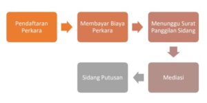 Proses atau tahapan yang harus dilalui selama proses litigasi adalah sebagai berikut: